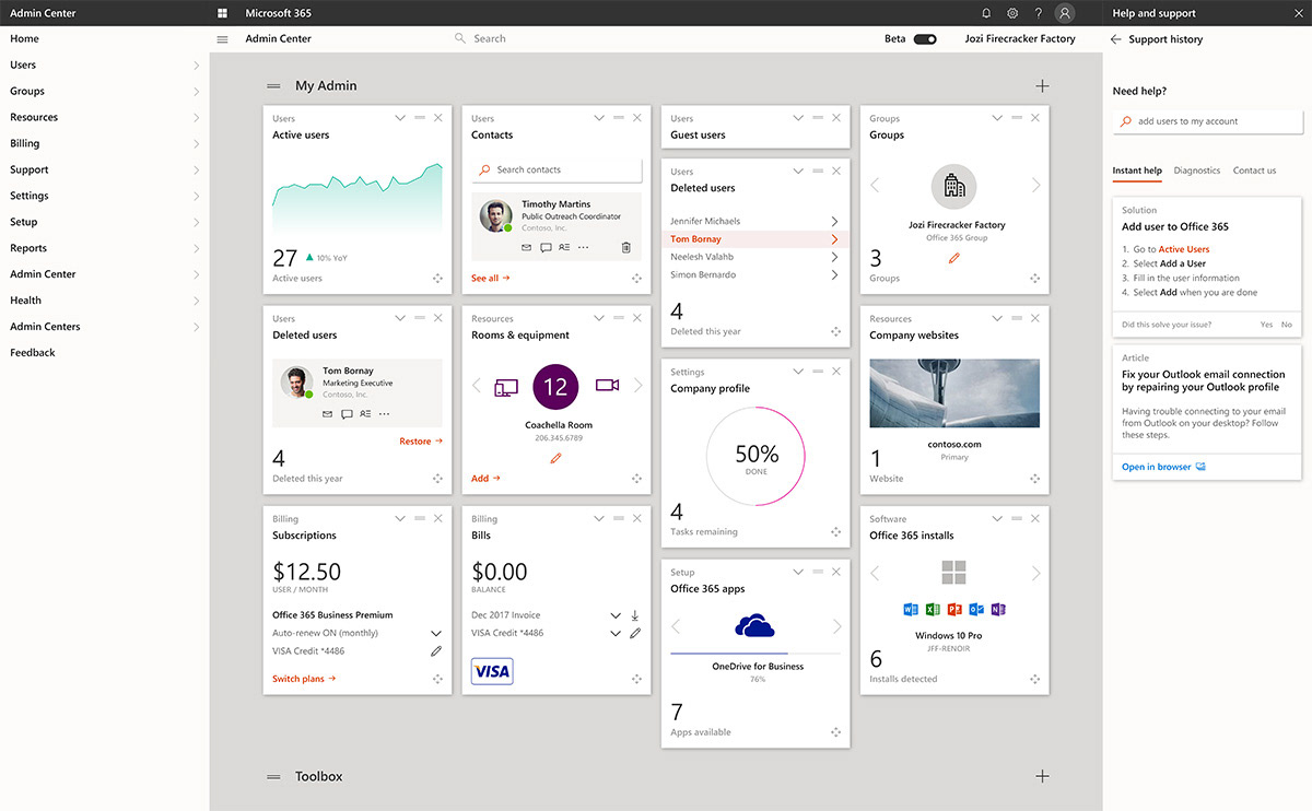 Modular solutions for Office 365 SMB and Enterprise admin support, reporting and customer-facing analytics.
